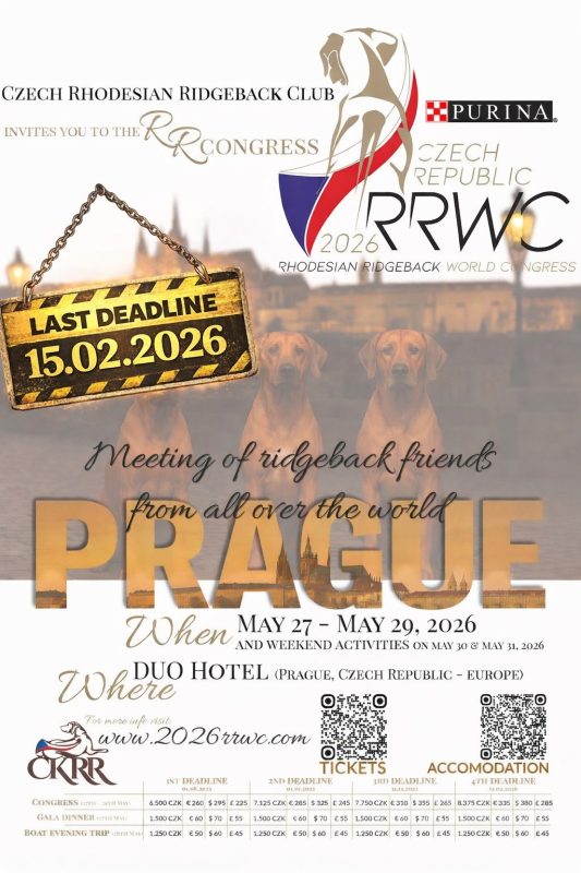 We would like to remind you of the upcoming deadline for the Rhodesian Ridgeback World Congress.
